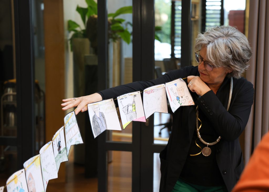 De kinderen verrasten de burgemeester tijdens het ontbijt met een prachtige zelfgemaakte slinger.