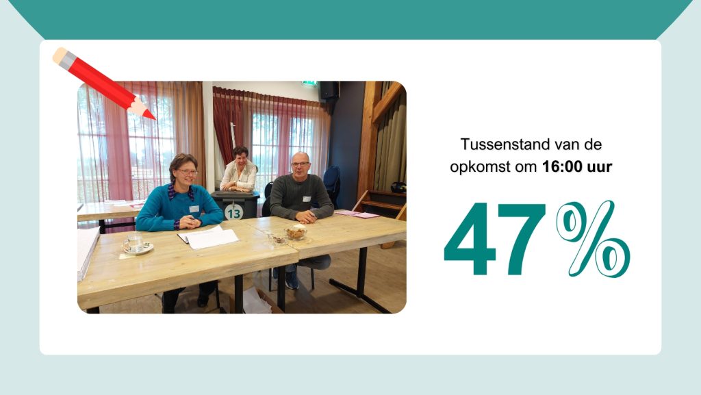 Het 2e opkomstpercentage is bekend. Om 16:00 uur heeft 47% van alle stemgerechtigden in Hof van Twente zijn of haar stem uitgebracht.