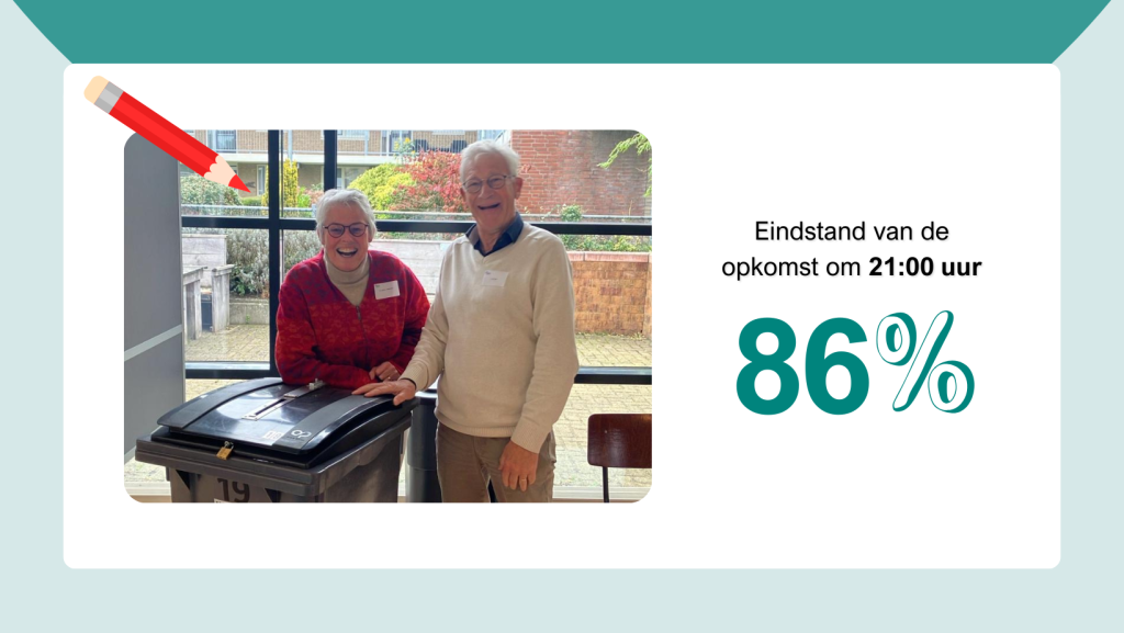 Het opkomstpercentage in gemeente Hof van Twente is 86%. De uitslag plaatsen wij morgenochtend op deze pagina.